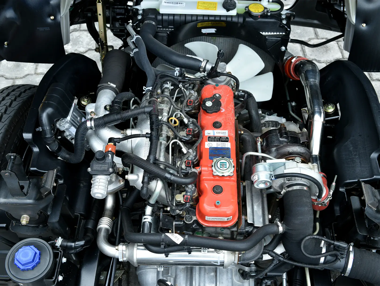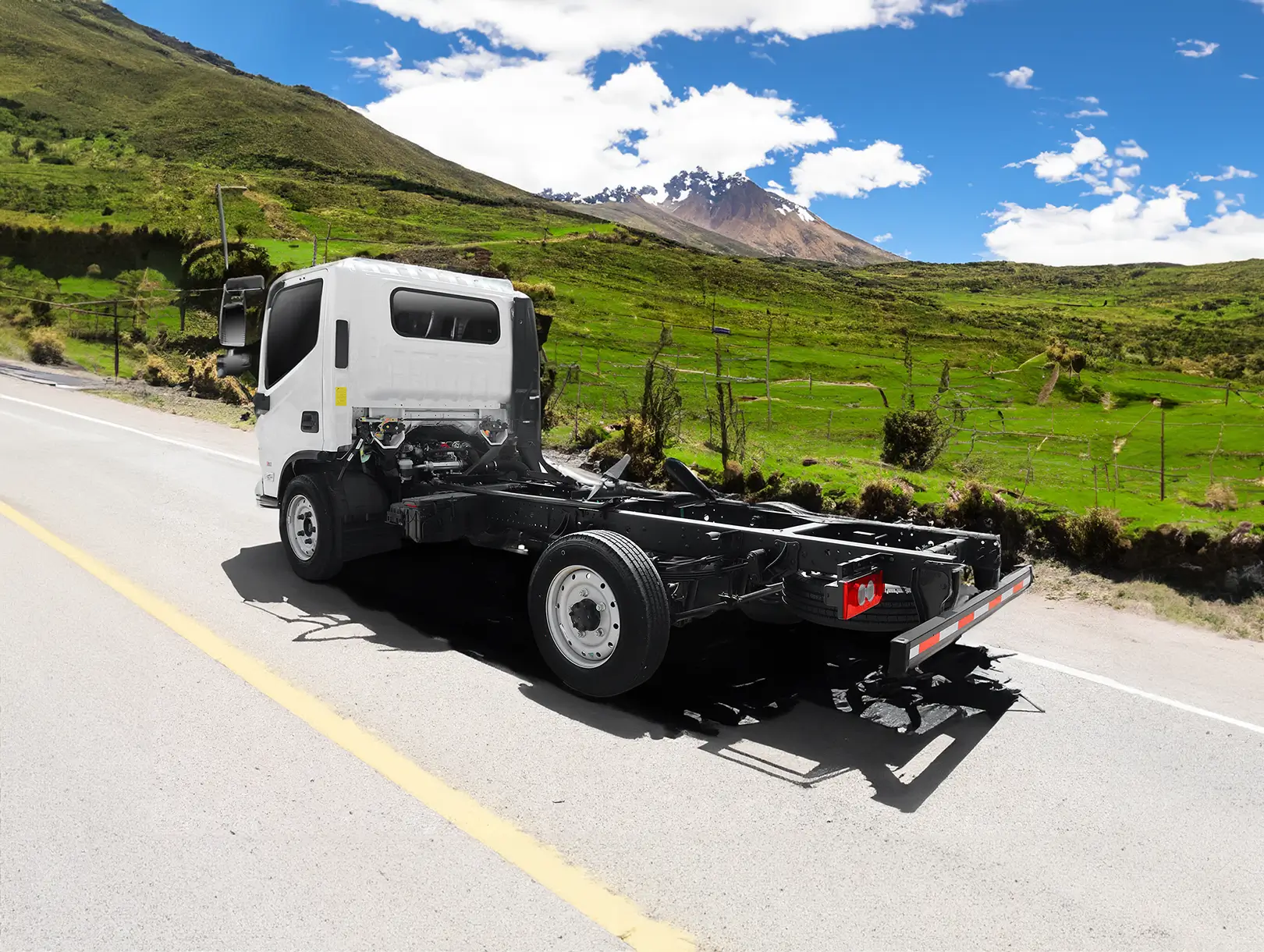 Motor BJ493ZLQ3 Turbo Intercooler, 110 HP y 280 Nm. Caja WLY 5 velocidades y tracción 4×2. Consumo optimizado y arranque firme incluso con carga completa.